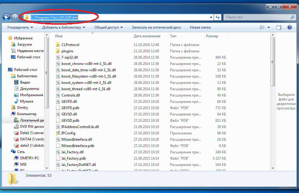 Заходим в C:\Program Files\JAI\SDK\bin (для 64-х битных систем - C:Program Files\JAI\SDK\bin\Win32_i86), копируем путь.
