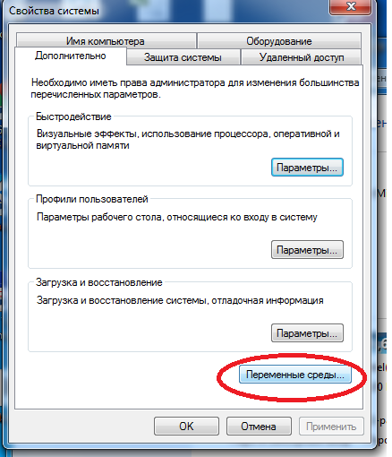 Далее в раздел «Переменные среды»