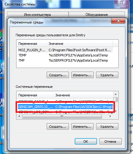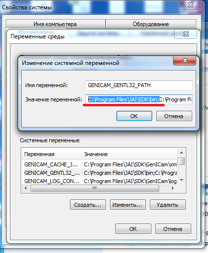 В GENICAM_GENTL32_PATH копируем адрес, после адреса нужно добавить символ «;».