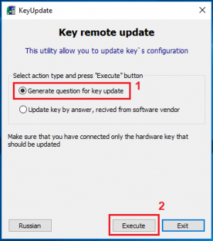 Выберите пункт «Update key by answer, received from software vendor» и нажмите кнопку «Execute»