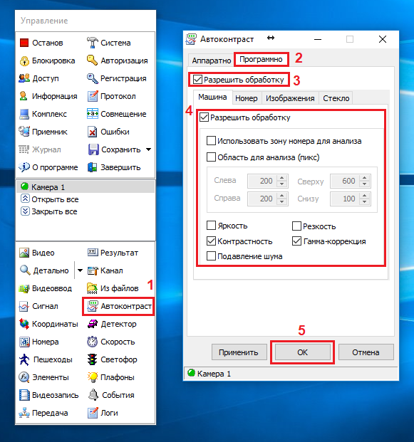 В меню URS «Автоконтраст» —> «Программно» примените следующую настройку: