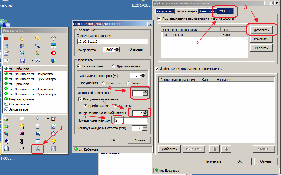 Далее в настройках передачи данных, во вкладке «Участки» добавить участок подтверждения для полос ( если фиксируется нарушение разметки или знака), номера исходной ( добавляли на прошлом этапе) и конечной(номер конечной зоны так же будет фигурировать далее в настройках самой камеры подтверждения).