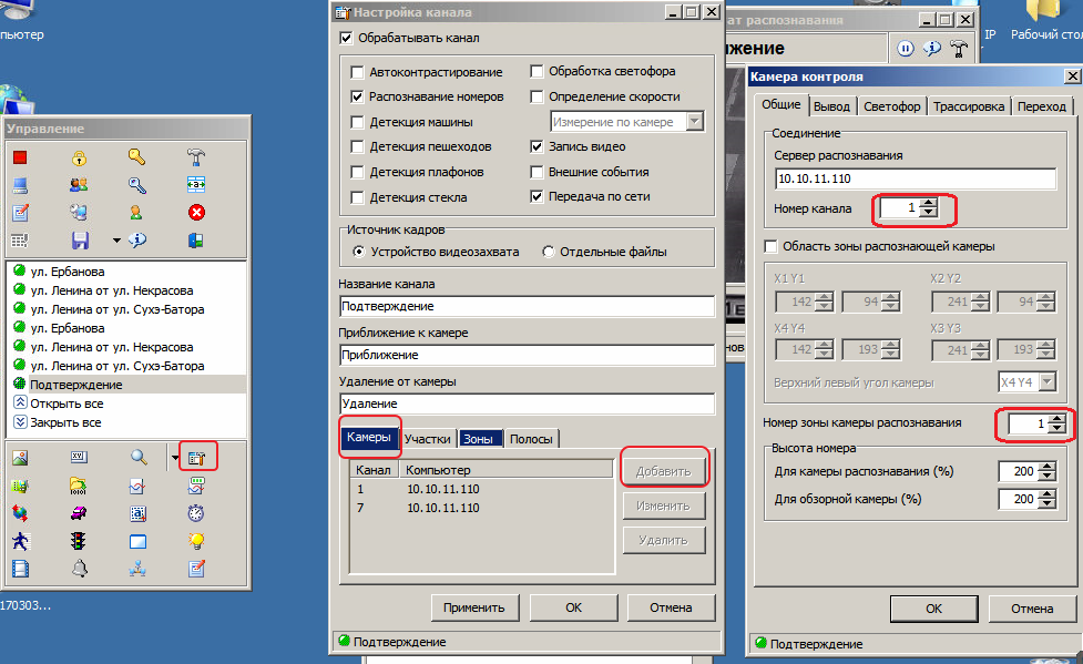 Далее необходимо настроить камеру подтверждения. Сначала в канале камеры нужно добавить камеру контроля – основную распознающую камеру.
