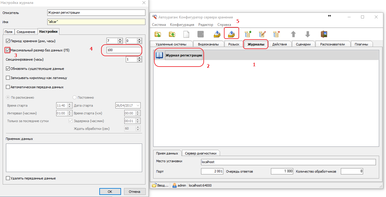 Для того, чтобы база данных чистилась и по времени и по размеру, необходимы следующие настройки.