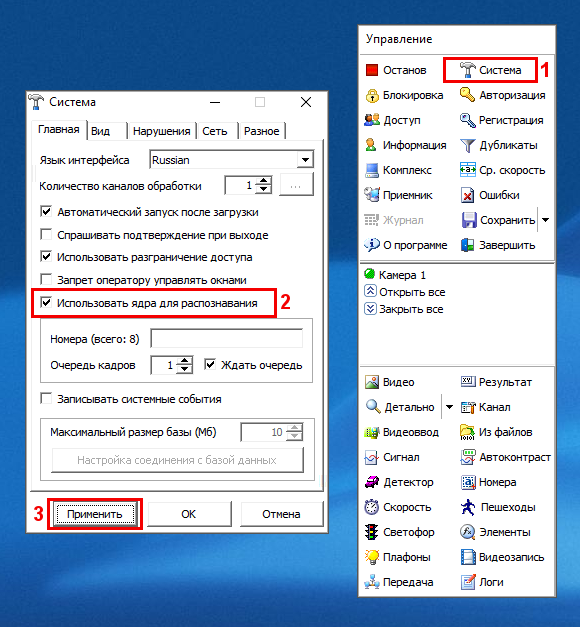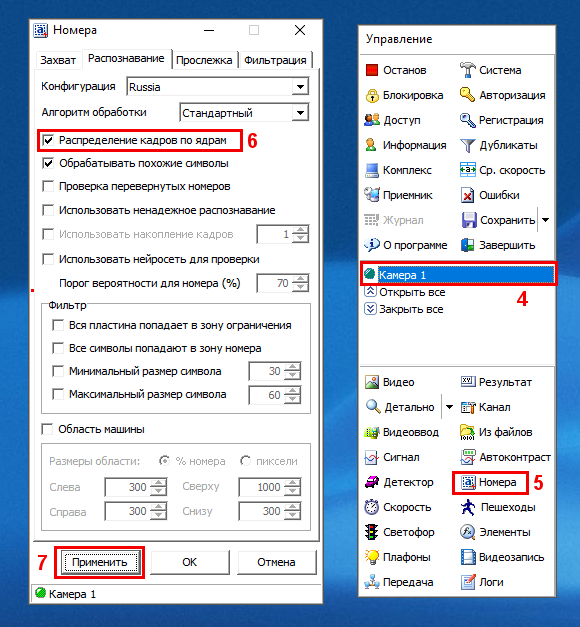 Данная настройка позволяет увеличить скорость распознавания ГРЗ транспортных средств при высокой загруженности автодороги. Увеличение скорости распознавания происходит за счет более рационального использования ресурсов сервера (перераспределения нагрузки по ядрам процессора).