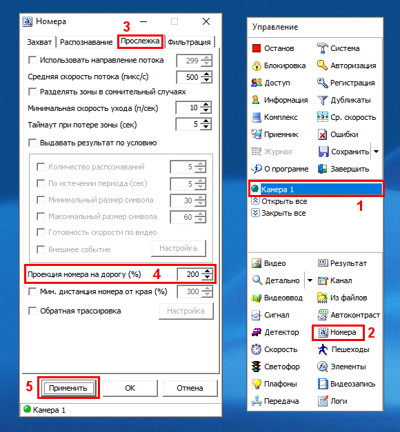 Таким образом, для корректной фиксации правонарушения необходимо внести поправку на угол наклона видеокамеры, что и делает настройка «Проекция номера на дорогу». Процент проекции настраивается индивидуально для каждой видеокамеры.