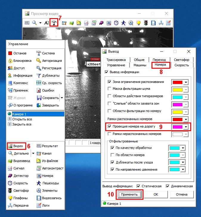 9. Поставить галку в области «Проекция номера на дорогу», выбрать цвет рамки ГРЗ.