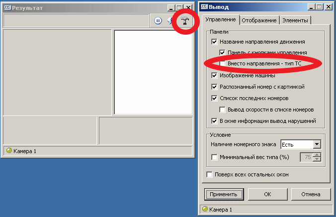 6. Далее заходим в результат распознавания → настройка отображения → ставим чекбокс «Вместо направления — тип ТС».