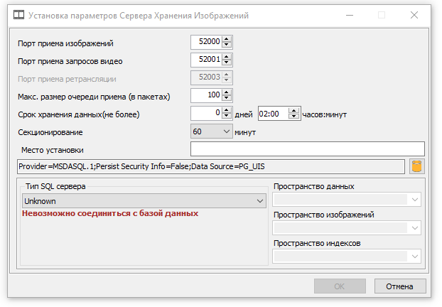 Далее настройки хранения базы данных, ее тип и ODBC подключение.
