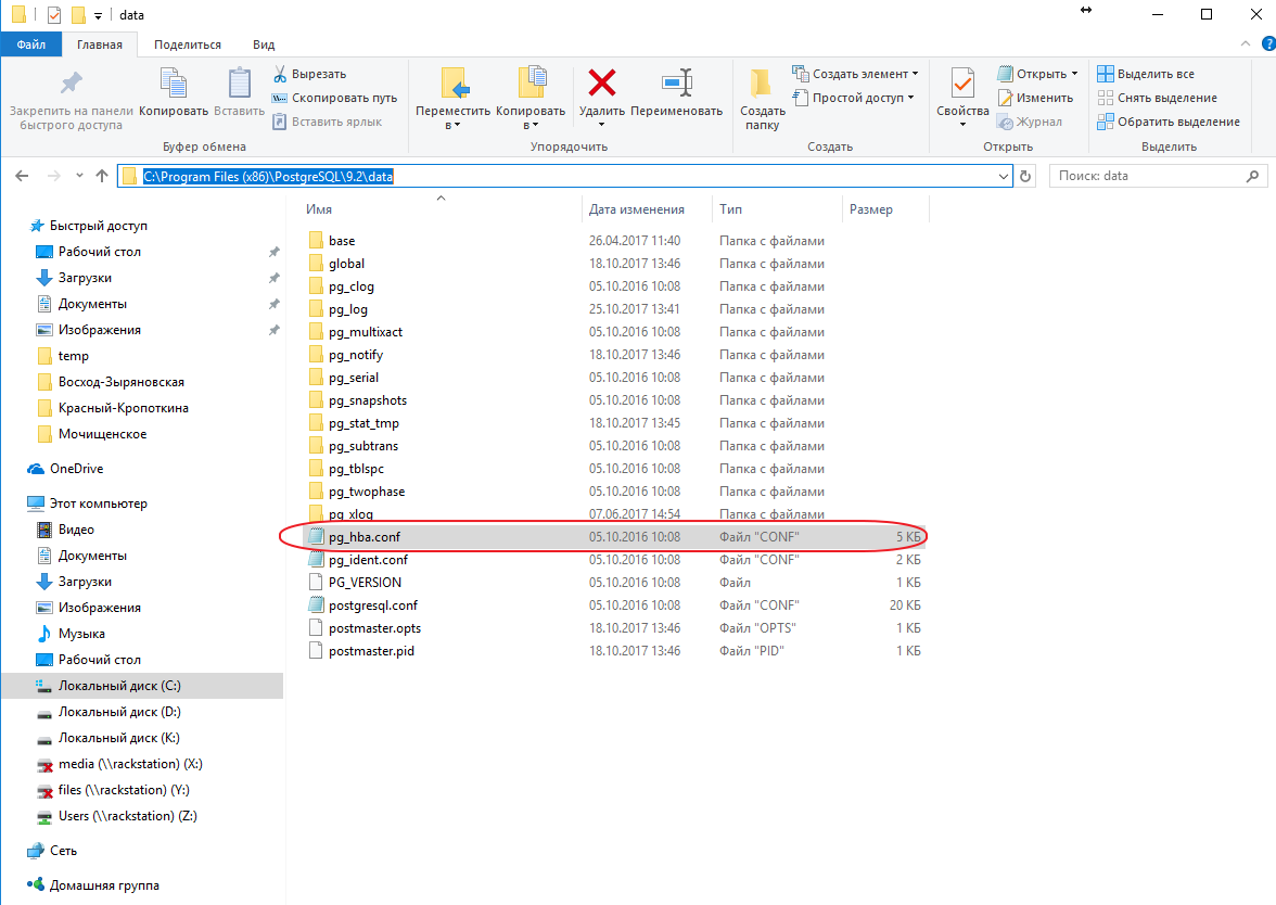 Сначала находим папку, в которую установлен PostgresSql, в папке data находим файл Pg_hba.conf